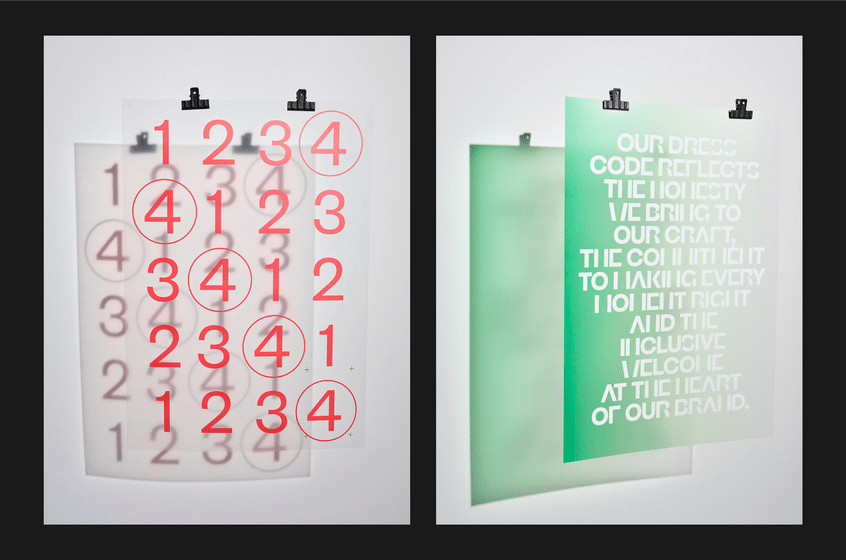 To highlight the fourth anniversary of the studio, we wanted to showcase our love of design, which is our greatest strength. We created a series of 13 poster invitations, each different from the next, printed on acetate sheets. Playing with transparency and opacity, the posters were designed to be combined in twos or threes, creating a collection of colourful, geometric compositions with countless variations. Each guest therefore received a unique invitation.