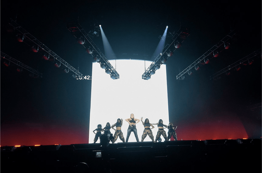 The show's set design was structured around the history of time, providing a pretext to move back and forth within the singer’s repertoire.