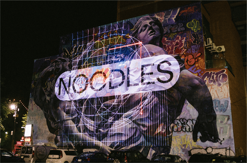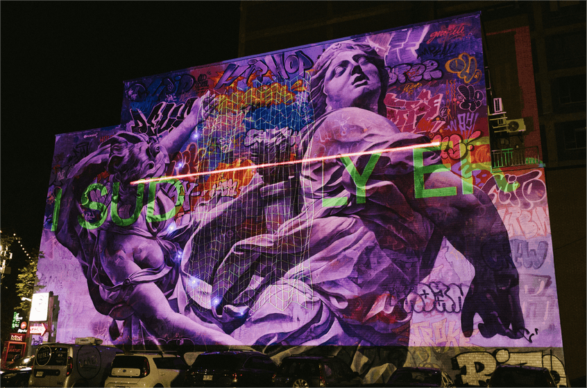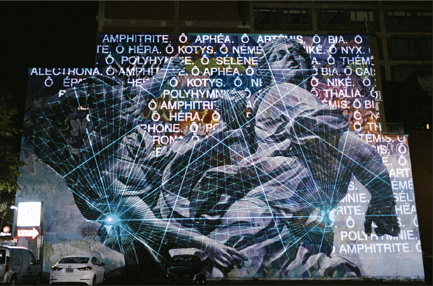 Produced as part of the 2019 edition of the MURAL Festival in collaboration with MAPP_MTL, this project's goal was to use mapping and laser games to animate a mural by the artistic duo PichiAvo from Valencia. In the spirit of VJing, it was performed in the evening with original music by Hologramme.