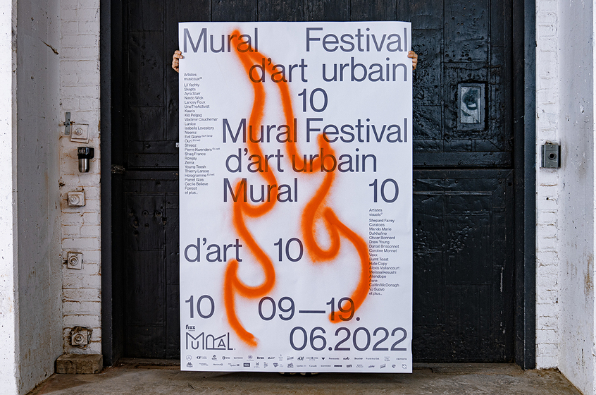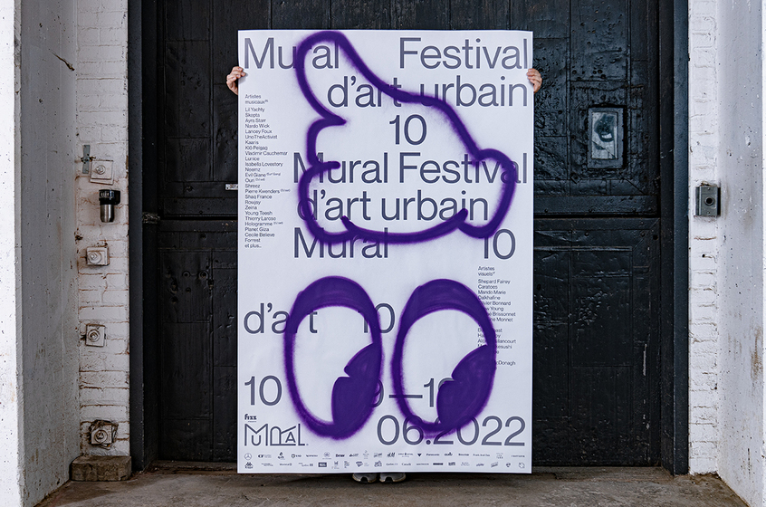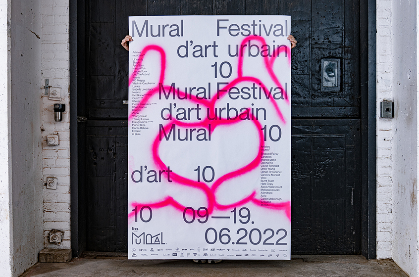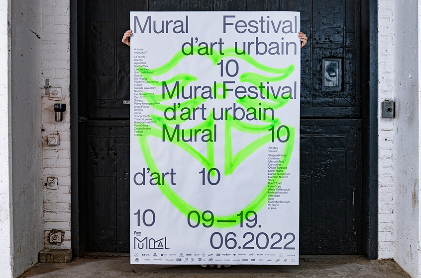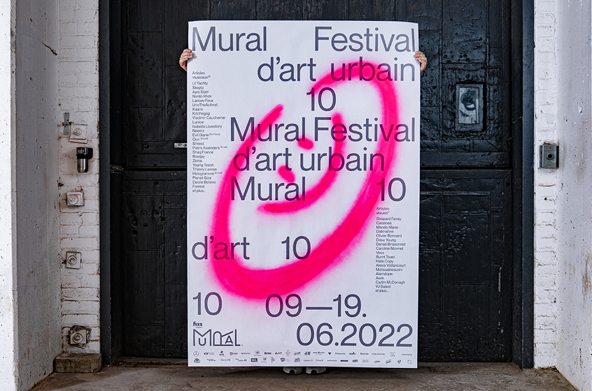 Pour célébrer la dixième édition de Festival d’art urbain Mural, nous avons créé une identité éclatante qui souligne la première décennie du festival tout en marquant le ton pour les années qui suivront. Pour ce faire, nous avons réalisé une campagne centrée sur un système de 10 illustrations style graffiti - joueuses et vives - qui étaient apposées sur des visuels typographiques, sobres et contemporains. Lors de la campagne d’affichage sauvage, nous avons ajouté une dimension matérielle au projet alors que les affiches ont été individuellement graffées avant d’être posées.