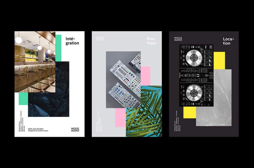 Moog Audio, iconique magasin d’instruments de musique montréalais, a confié le renouvellement de son identité, intouché depuis sa fondation en 1998, au Studio Baillat. L’objectif était de rajeunir l’énergie autour de la compagnie en offrant un logo plus contemporain et une direction artistique claire aux produits et à l’imagerie de la marque. Pour ce faire, nous avons créé un concept imagé et ludique déclinable en trois visuels pour représenter les trois services offerts par Moog Audio : vente, location et intégration.