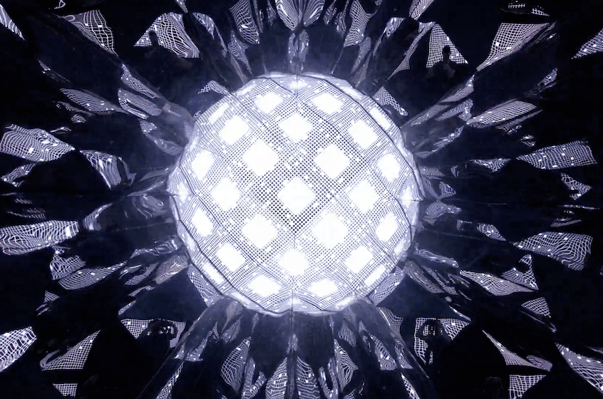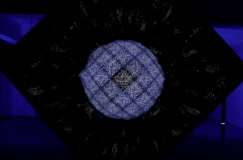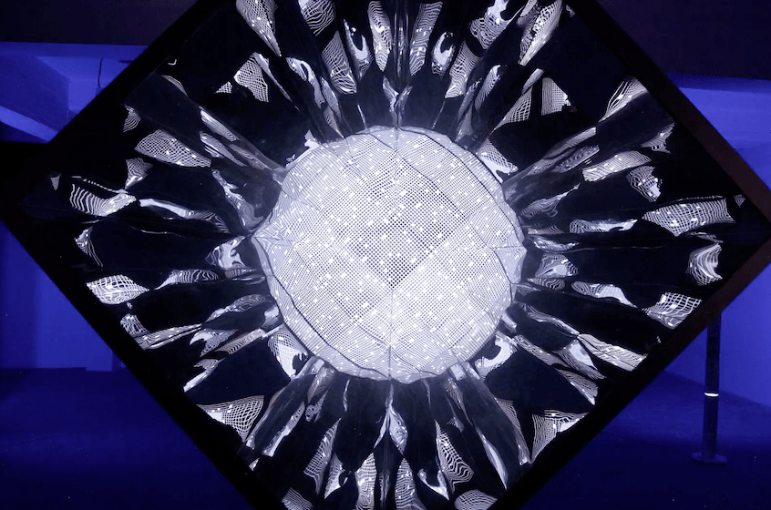 Pour augmenter l'immersion dans l'oeuvre, trois écrans sont installés derrière le spectateur qui regarde dans le SUPERCARRÉ. Les visuels des écrans sont reflétés à l'intérieur de la structure absorbant le spectateur dans un caléidoscope lumineux.