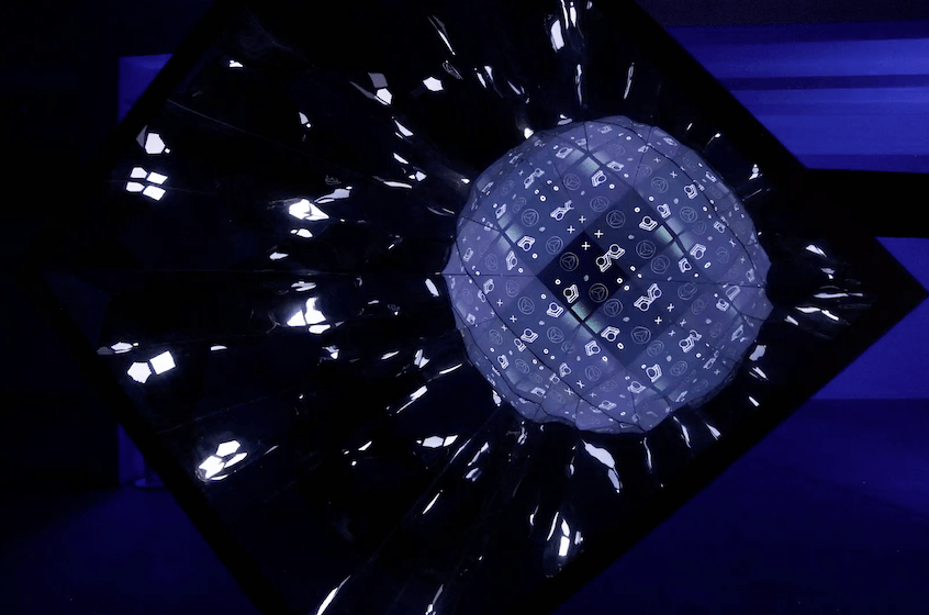 SUPERCARRÉ est une installation artistique qui explore l’insoluble quête de la quadrature du cercle en cherchant à déjouer le système perceptif des visiteurs. À l’aide d’un tunnel en miroir, une image carrée donne l’impression d’être sphérique et tridimensionnel, en plus d’être composée de répliques de cette même image.